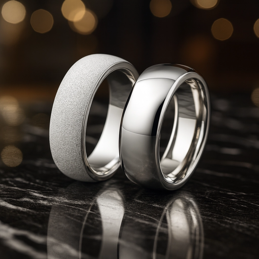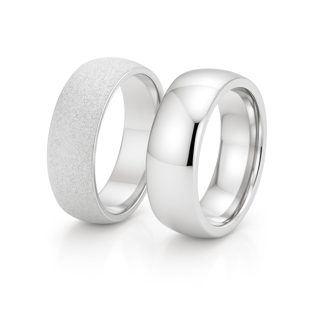 Parlak bombeli form, ışığı yansıtarak göz alıcı bir ışıltı sunarken; mat yüzey, sade ama şık bir duruş kazandırır. Günlük kullanımda konfor sağlayan ergonomik tasarımıyla hem estetik hem de kullanışlı bir alyans tercihidir.